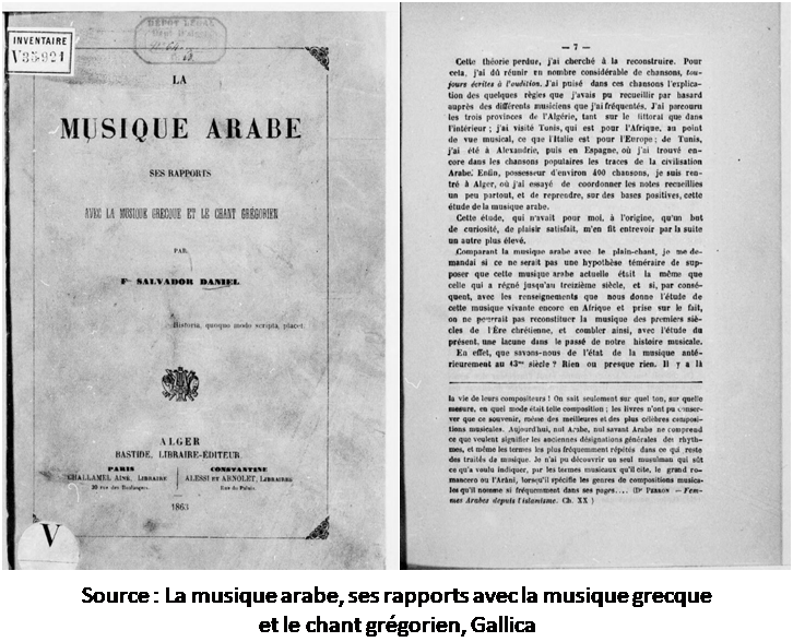 – La musique arabe, ses rapports avec la musique grecque et le chant grégorien, Francisco Salvador Daniel, 1863